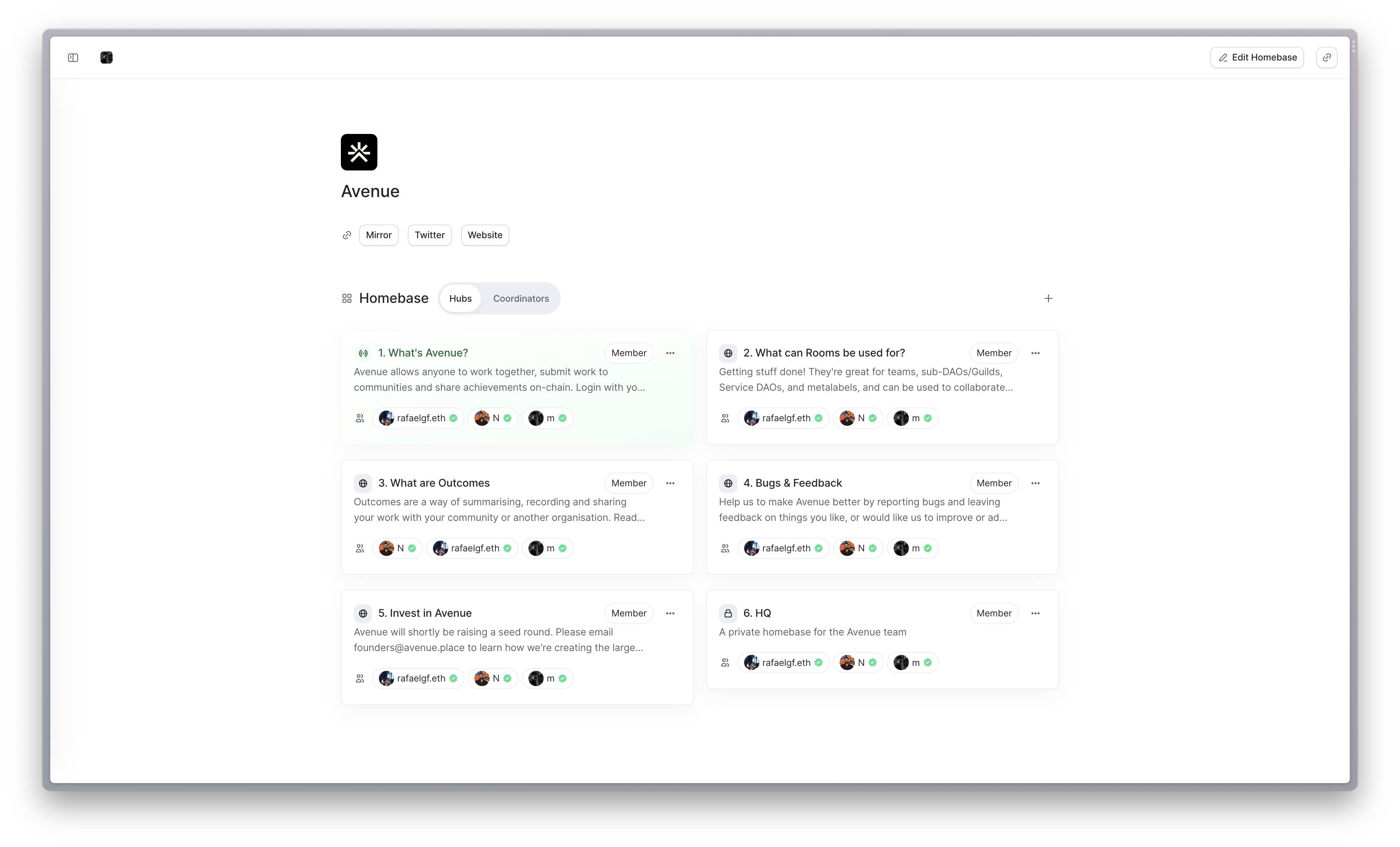 By the end of it, you should have a starter Homebase that looks [like this.](https://avenue.place/~avenue)
